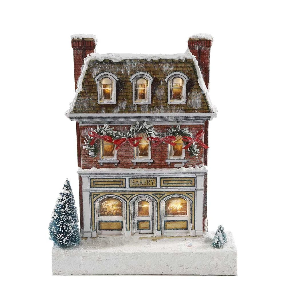 Take a stroll through Kringle Lane, Kurt Adler’s new collection of charming buildings inspired by the warmth of Christmases celebrated in small towns across the country. The Bakery is adorned with 3D decorative touches, including festive wreaths, garland, snow-dusted evergreen trees, and a snowy base. One can almost smell its fresh-baked goods with its charming details, like the shop’s specials written in the front windows. Its flat facade is exquisitely finished with warm, lively colors. To finish the classic look, the windows are illuminated at the flick of a switch by LED lighting. Each Kringle Lane building is battery-operated.